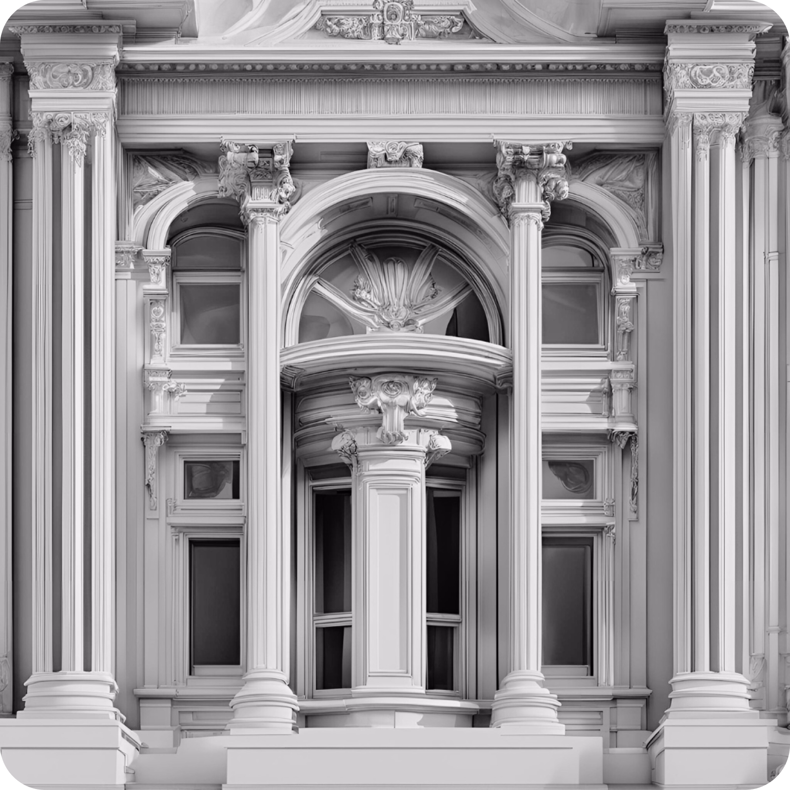 Classica Model combines classical grandeur with modern elegance, featuring symmetrical forms, tall columns, and refined details.